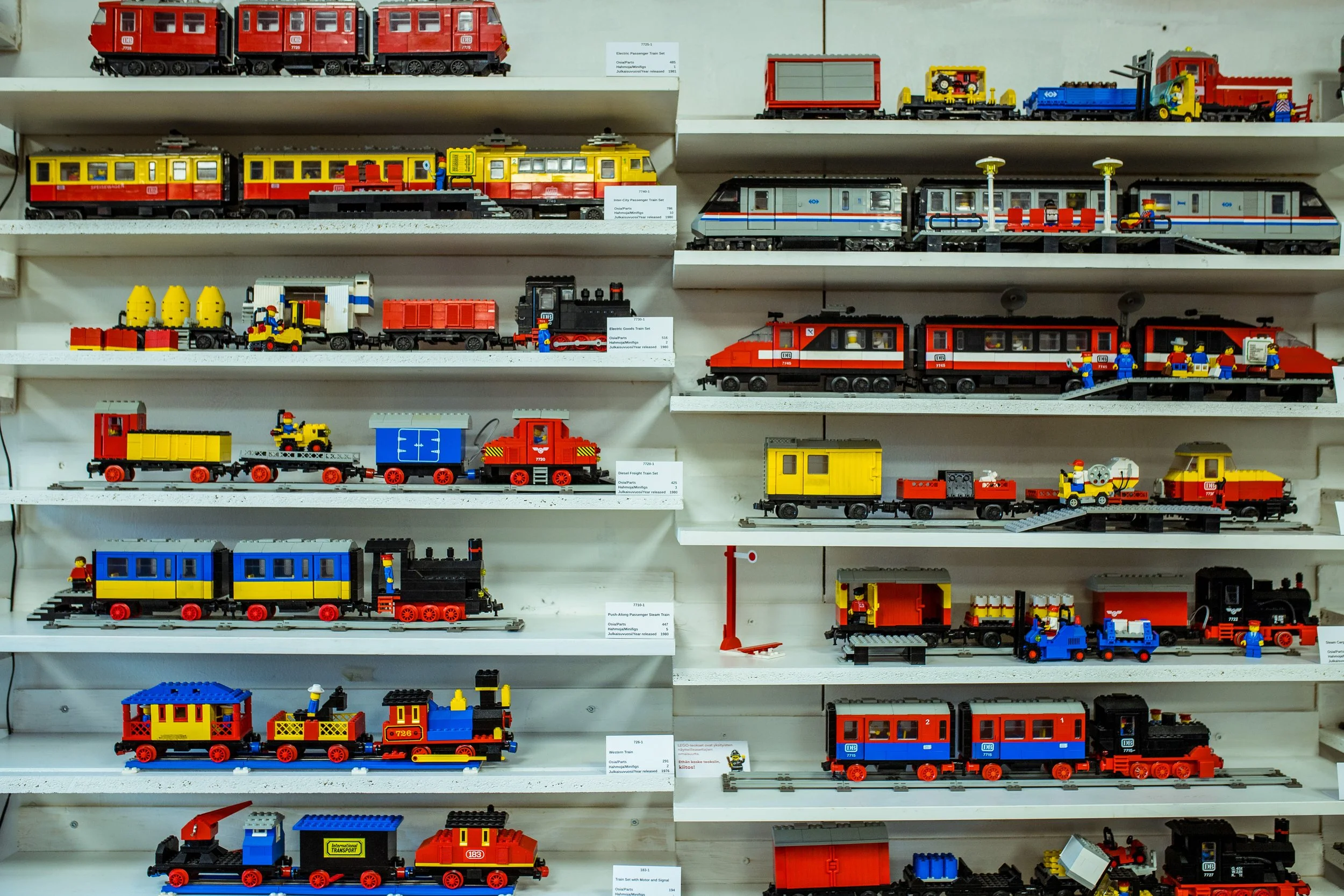 Olemme Suomen suurin LEGO®-museo. Kokoelma sisältää tuhansia settejä eri vuosikymmeniltä – mukana niin vanhoja klassikoita kuin harvinaisia erikoisuuksiakin. Mukana on Star Warsia, Ninjagoa, Techniciä, Friendsiä – ja paljon muuta. Jokaisella hyllyllä on oma tarinansa.